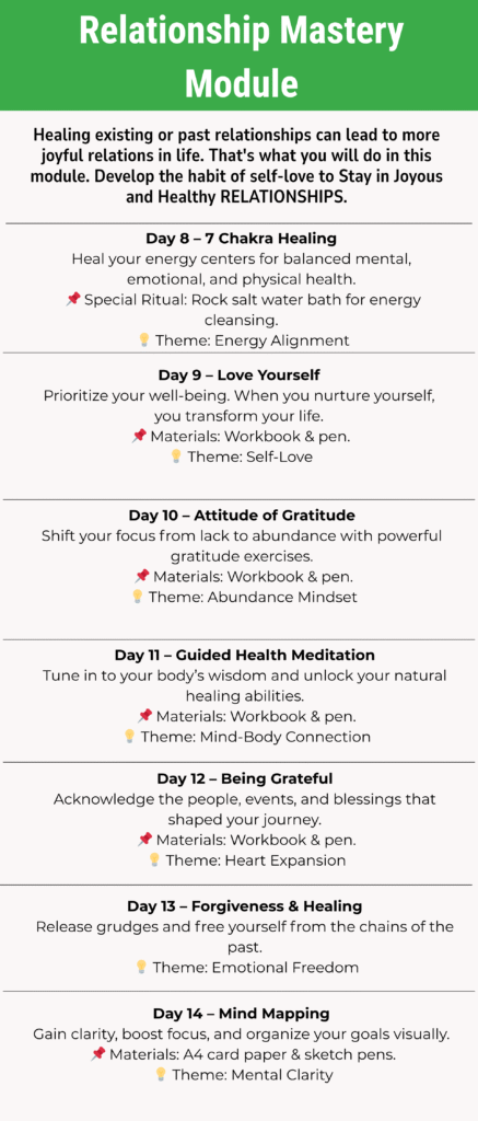 In just 15–25 minutes a day, this transformative program will shift your inner codes, helping you manifest everything you’ve ever wanted — with clarity, purpose, and powerful energy.